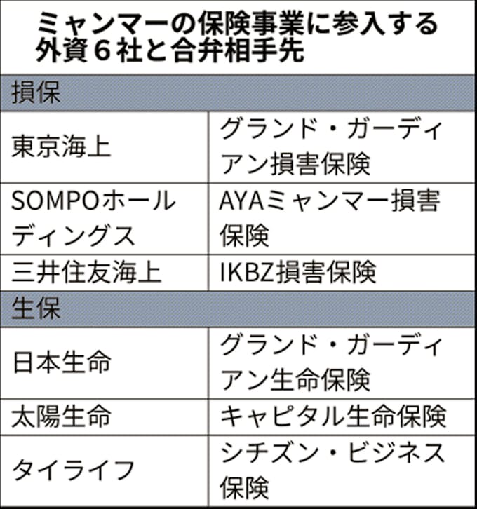 ミャンマー 外資保険6社に合弁認可 5社が日系 日本経済新聞