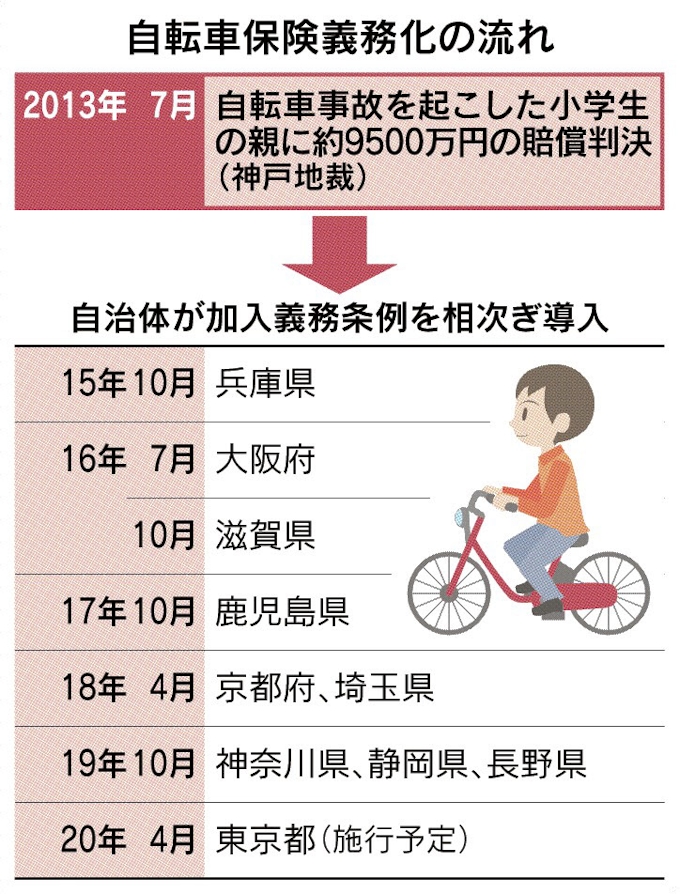補償の範囲は 保険料は 4月から加入が義務づけられる自転車保険の